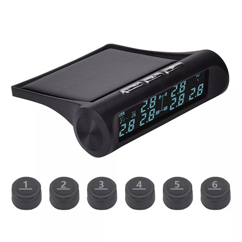 Sistema de control de presión de neumáticos Kit de sensor TPMS Solar Rv inalámbrico con 4 y 6 sensores de presión de neumáticos y pantalla LCD